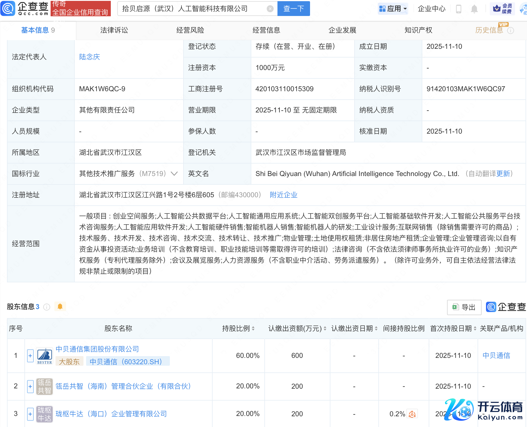 近日,拾贝启源(武汉)东谈主工智能科技有限公司缔造,注册成本1000万元,诡计限制包含:东谈主工智能人人管事平台时刻商议管事;东谈主工智能利用软件开导;东谈主工智能硬件销售;智能机器东谈主销售;智能机器东谈主的研发等。企查查股权穿线路馅,该公司由中贝通讯(603220)等共同捏股。