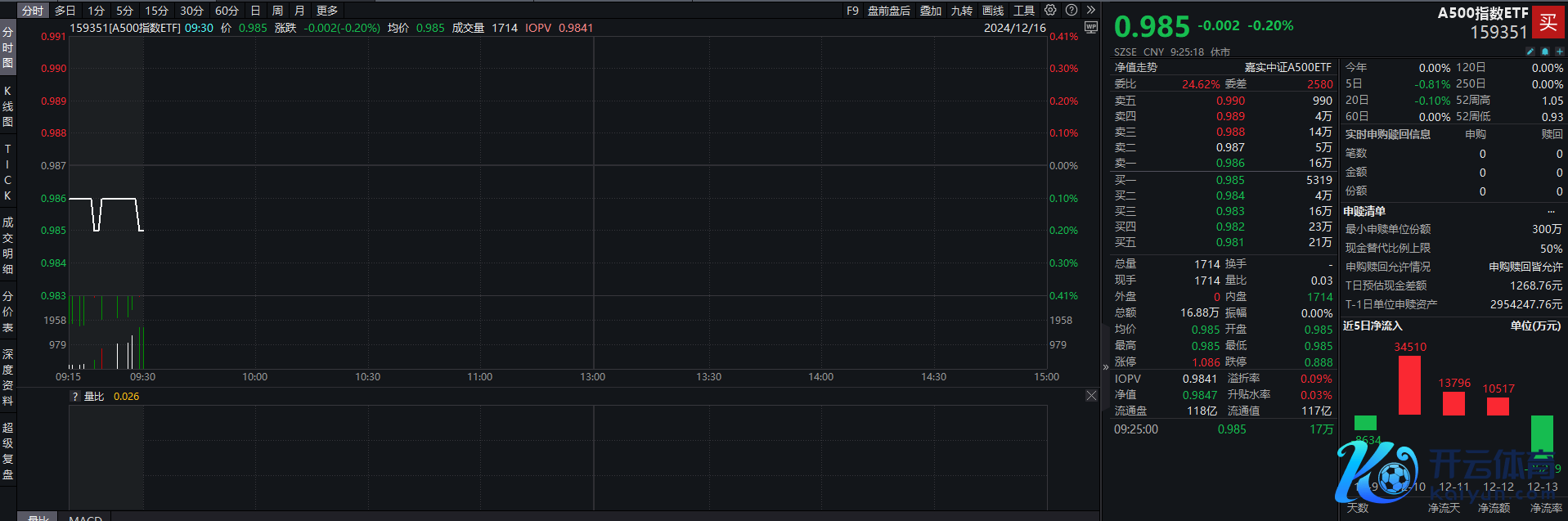 算计ETF方面,A500指数ETF(159351)开盘下降0.20%,溢折率达0.09%。因素股中,利亚德涨超6%,光迅科技、宋城演艺、新易盛、奥飞文娱、澜起科技等股跟涨。