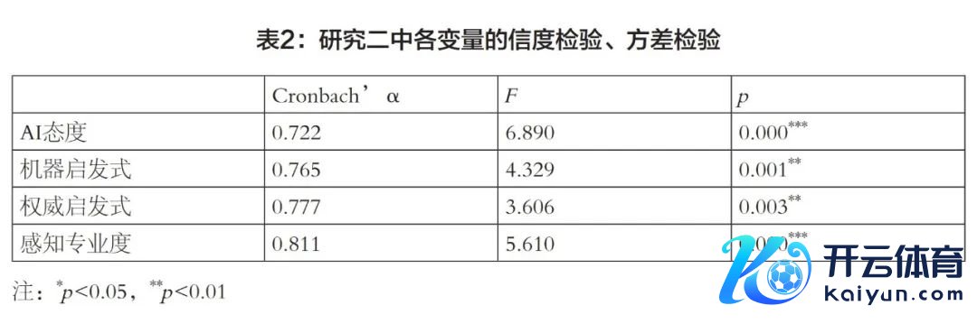 在研究二中,如表2,关于“机器启发式”进行信度持重,各变量均处于邃密及可接受范围内,量表信度相对较好,不错给与。