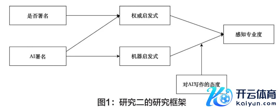 基于研究想法和既有研究近况,研究提倡以下研究框架,如图1所示。其中,自变量为驳斥“是否签字”“签字是否为AI”,因变量为“感知专科度”,中介变量为“巨擘启发式”“机器启发式”,调度变量为“关于AI写稿的魄力”。根据表面基础和研究框架,研究提倡以下研究假定: