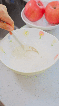 因为莫得加糖嘛,是以煮好的苹果是微微有点发酸的。