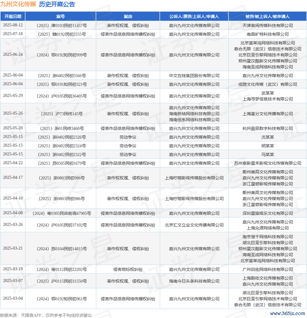 本站音书,阐发天眼查APP显现,近日公布了一则嘉兴九有文化传媒有限公司手脚原告/上诉东谈主的开庭公告,可贵履行如下: