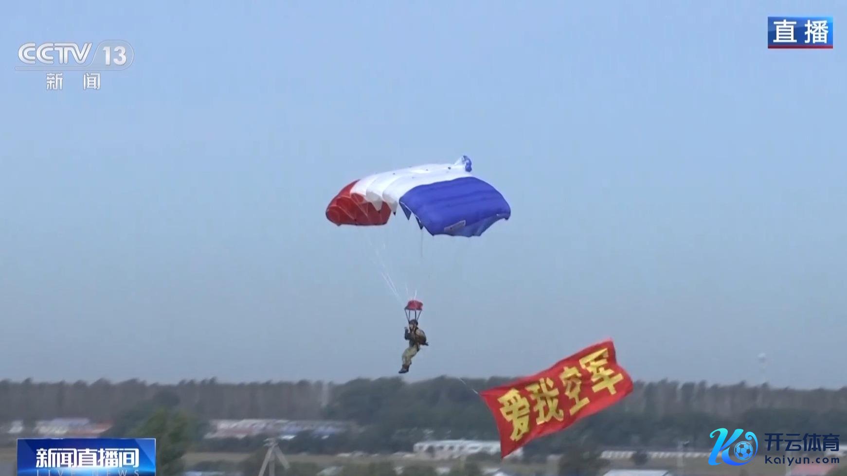 总台央视记者 刘冠青:刚刚两架运-12D输送机升空,由双机编队搭载的\"八一\"跳伞队、\"蓝鹰\"跳伞队队员运行了跳伞扮演。